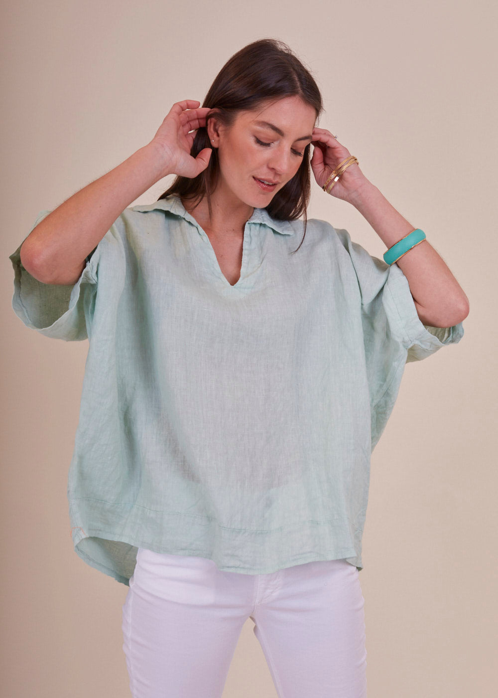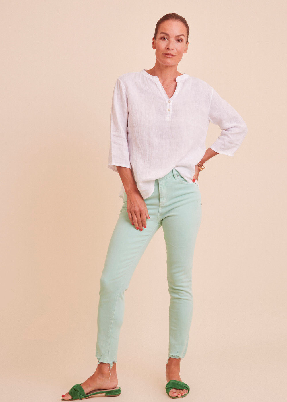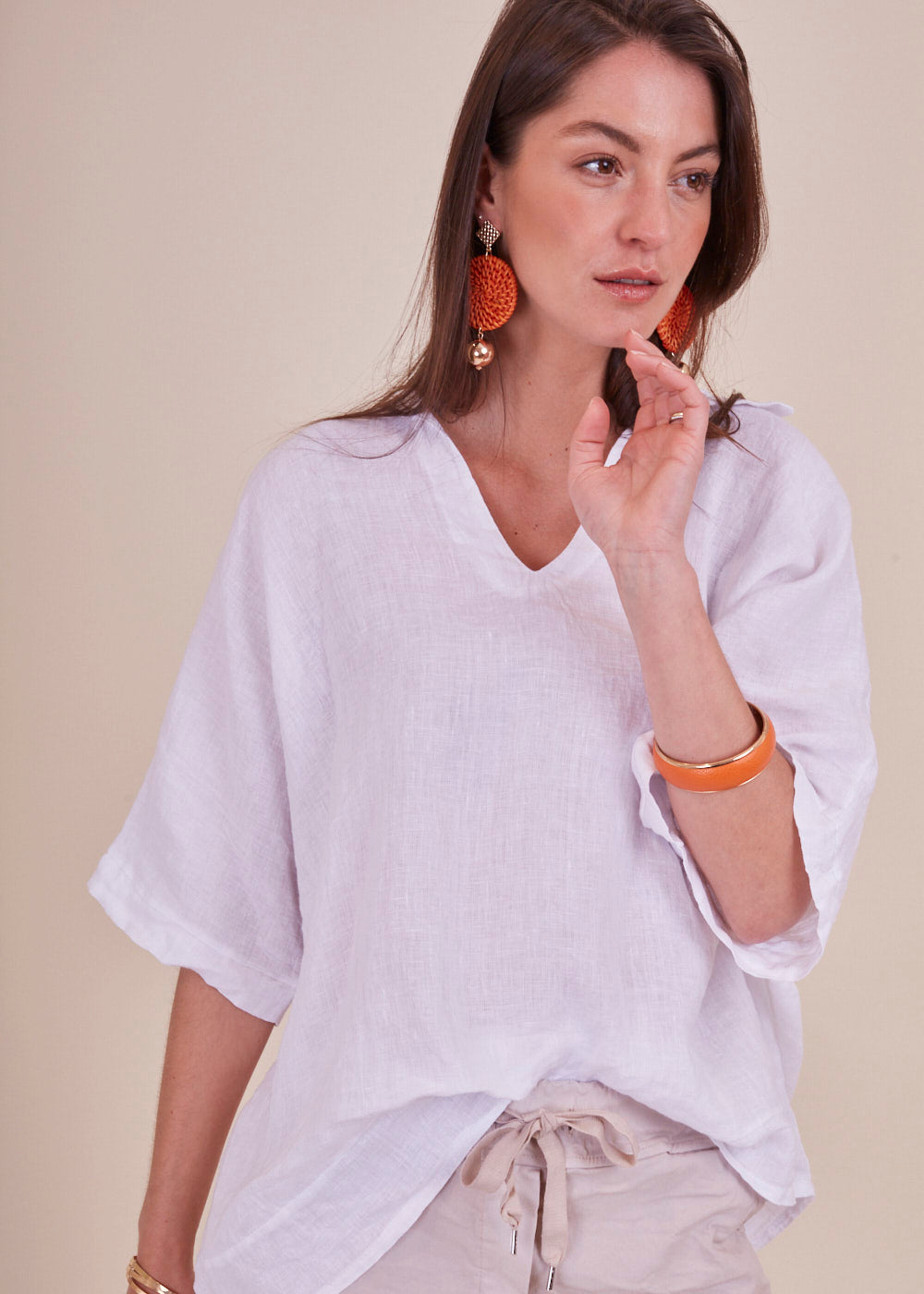Leinentunika im Materialmix