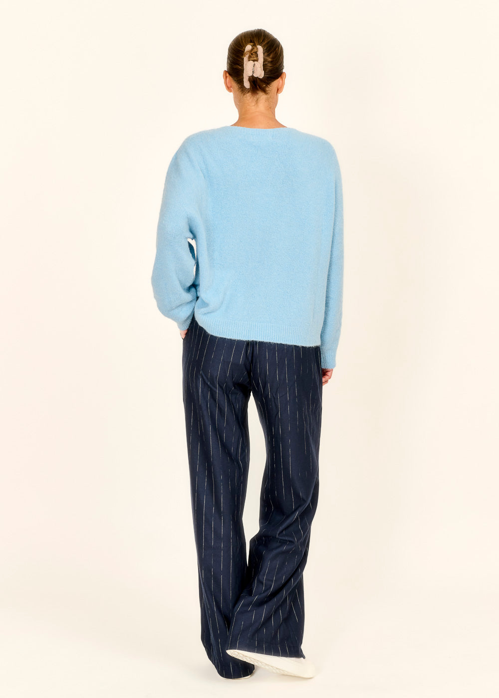 Fühl dich rundum wohl in unserem kuscheligen Wohlfühlpullover in der himmlischen Farbe "cielo". Perfekt für entspannte Tage, hält er dich warm und stylisch zugleich!