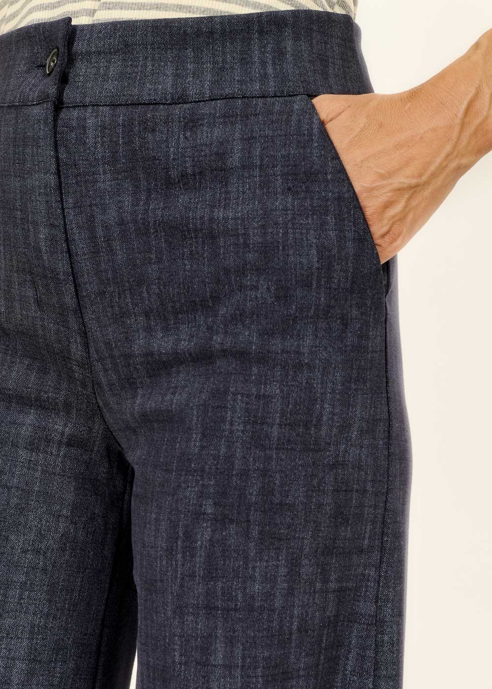 Entdecke die lässige weite Hose in cooler Jeansoptik – perfekt für einen entspannten Look mit Stil. Dank des bequemen Schnitts genießt Du den ganzen Tag Bewegungsfreiheit und Komfort!
