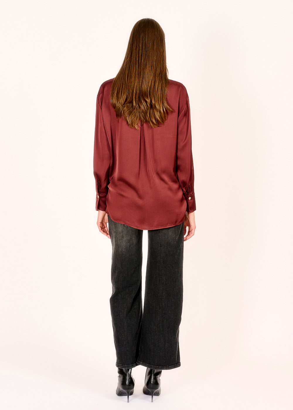 Die Satinbluse in Vino verleiht dir mit ihrem edlen Glanz und der sanften Passform einen besonders eleganten Look. Perfekt für jeden Anlass, an dem du glänzen möchtest!