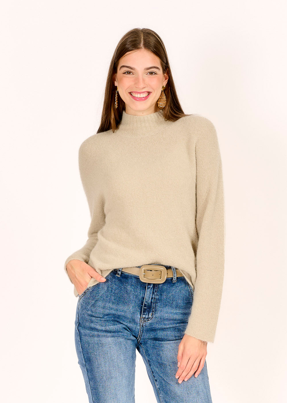 Dieser Turtleneckpullover in Sand ist der perfekte Begleiter für kühle Tage und überzeugt mit seinem weichen Tragegefühl. Kombiniere ihn für einen entspannten Look oder als stylisches Layering-Piece für deinen Alltag.