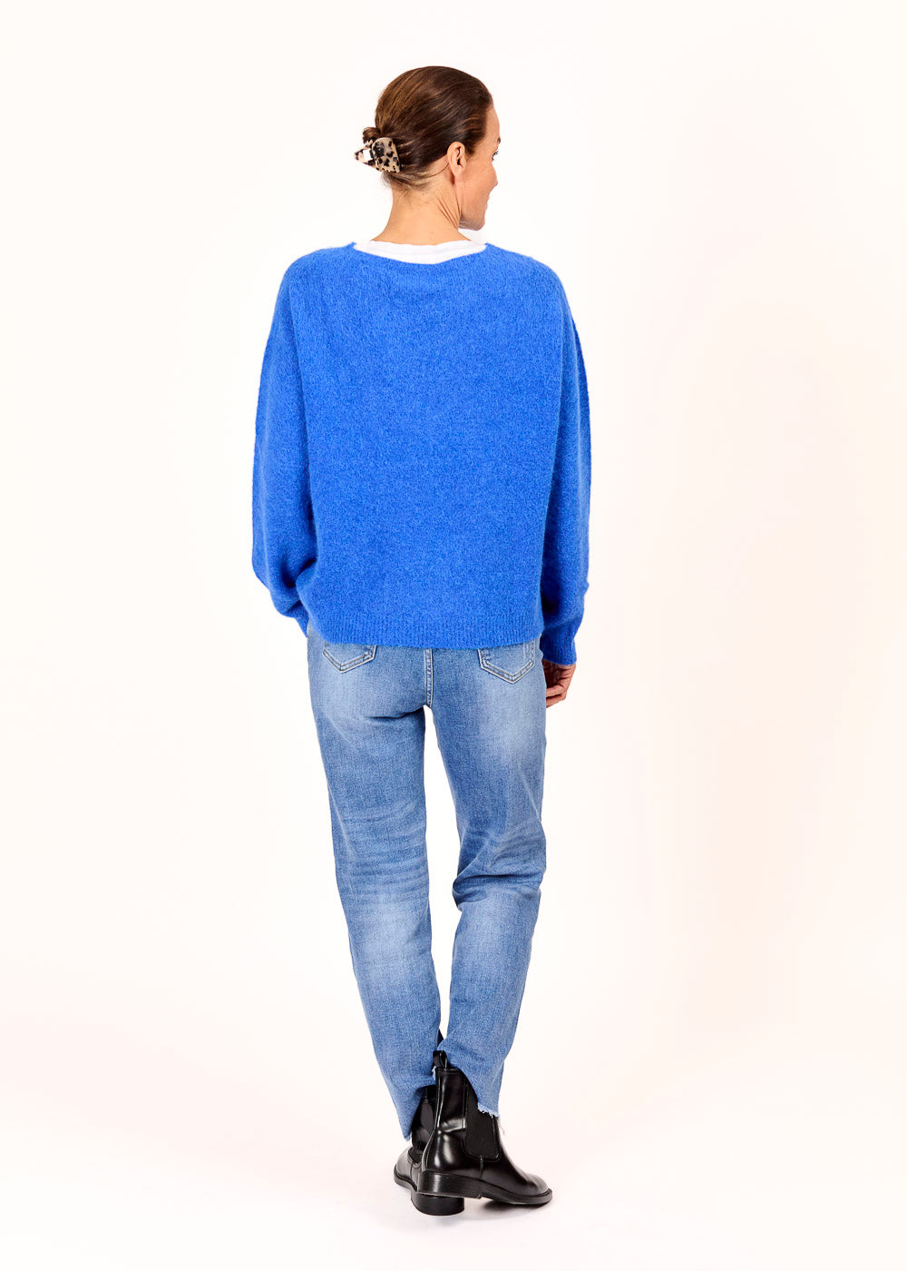 Entdecke deinen neuen Lieblingspullover in einem herrlichen Blauton – weich, gemütlich und perfekt zum Wohlfühlen. Ob für entspannte Stunden zu Hause oder den stylischen Alltagslook – dieser Wohlfühlpullover wird dich begeistern!