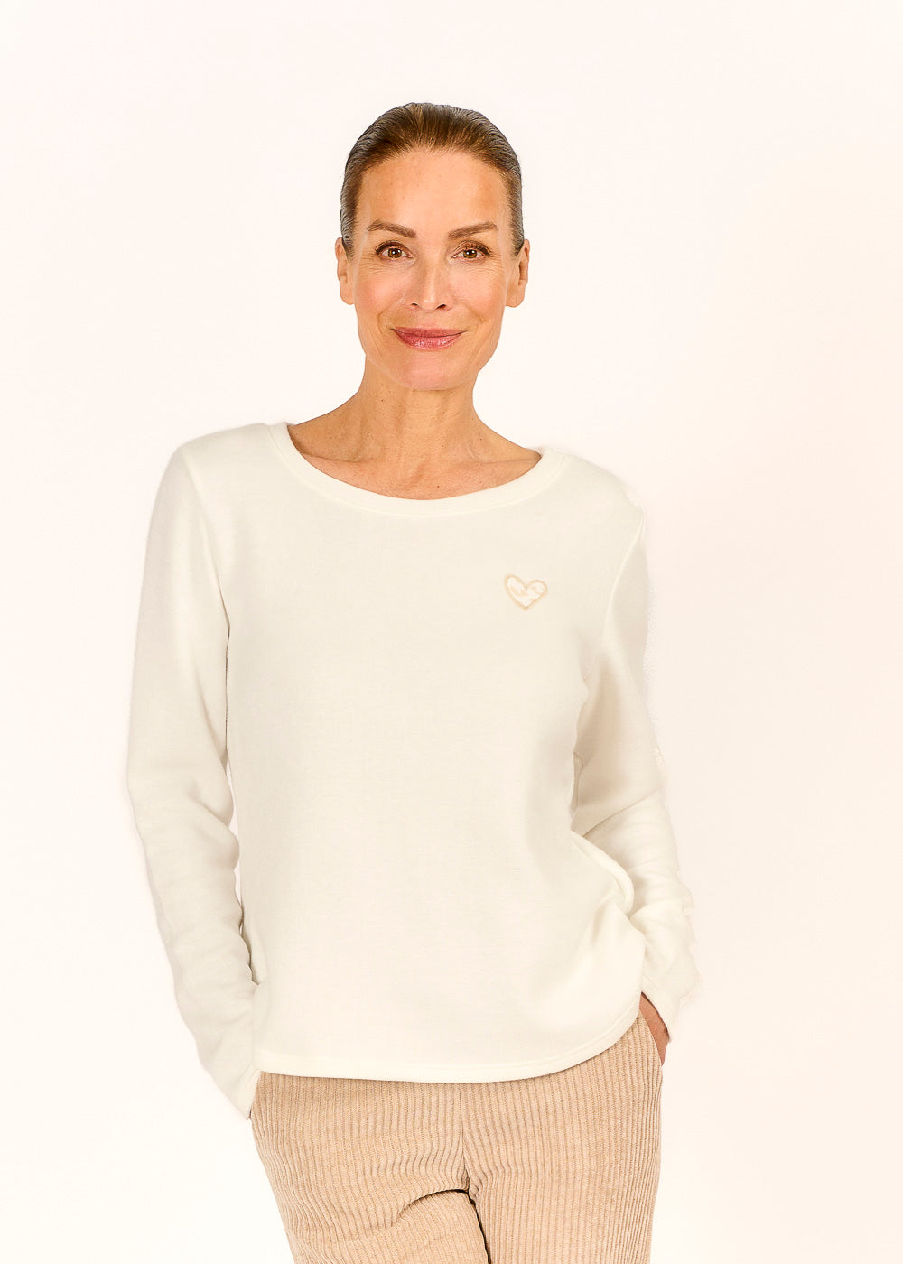 Dieses Langarmshirt mit Herz bringt Liebe in deinen Alltag! Es ist nicht nur super bequem, sondern verleiht deinem Look auch eine wundervolle, zarte Note.