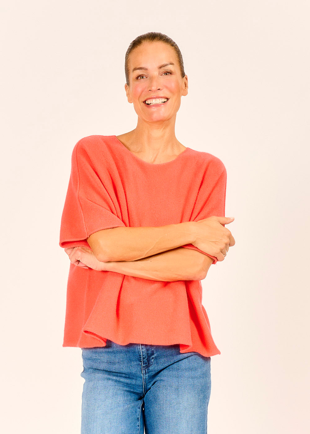 Dieser lässige Pullover in der leuchtenden Farbe Corallo ist ein wahrer Stimmungsaufheller und bringt frischen Wind in Ihre Garderobe. Sein weicher Griff und der entspannte, kastige Schnitt umschmeicheln die Figur und sorgen für ein angenehmes Tragegefühl. Das vielseitige Design macht ihn zum perfekten Begleiter für lässige Alltagslooks oder als modischen Akzent zu schlichteren Outfits. Ein Must-have, das Komfort und Stil perfekt miteinander vereint.