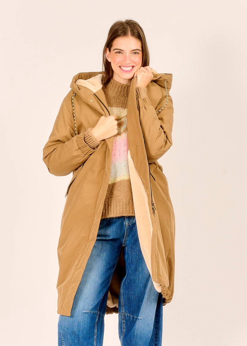 Ein echter Allrounder für die Übergangszeit: der Longparka von Como No. 1 in dezentem Beige. Das lange, knieumspielende Design und das wasserabweisende Obermaterial schützen dich zuverlässig vor Wind und Wetter. Für kuschelige Wärme sorgt die Kapuze mit weichem Teddystoff-Futter. Dank des Zwei-Wege-Reißverschlusses und den praktischen Eingrifftaschen ist dieser Parka der perfekte Begleiter für jeden Tag.
