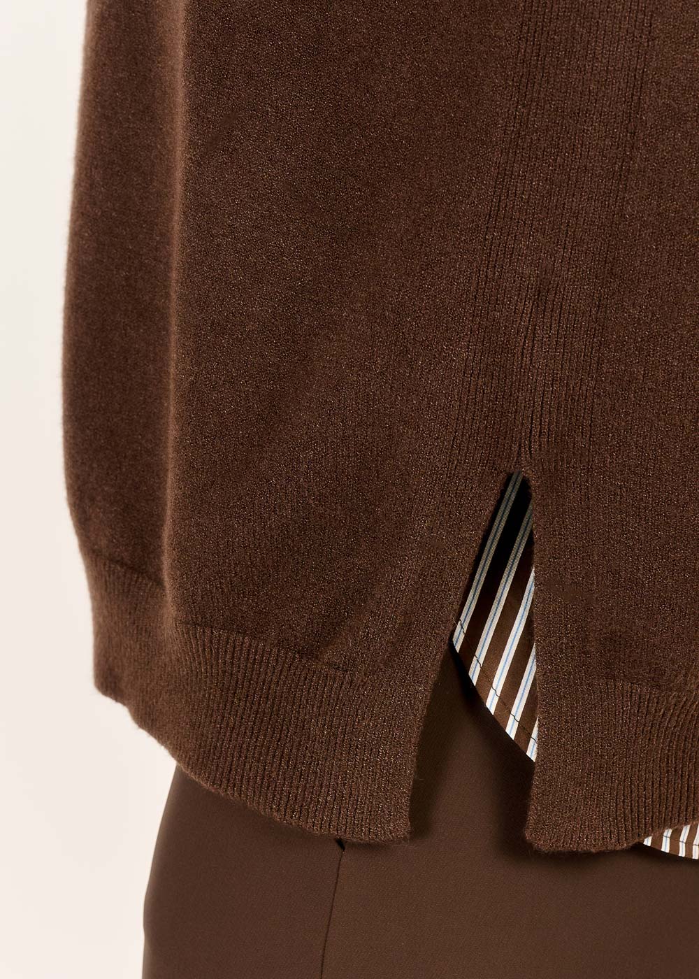 Subtile Eleganz: Dieser moccafarbene Pullunder ist ein Layering-Piece für Tage, an denen du dich einfach wohl und gleichzeitig wunderbar angezogen fühlen möchtest. Der edle Farbton verleiht jedem Look eine besondere Tiefe. Über einer Bluse getragen entfaltet er seine ganze Raffinesse.