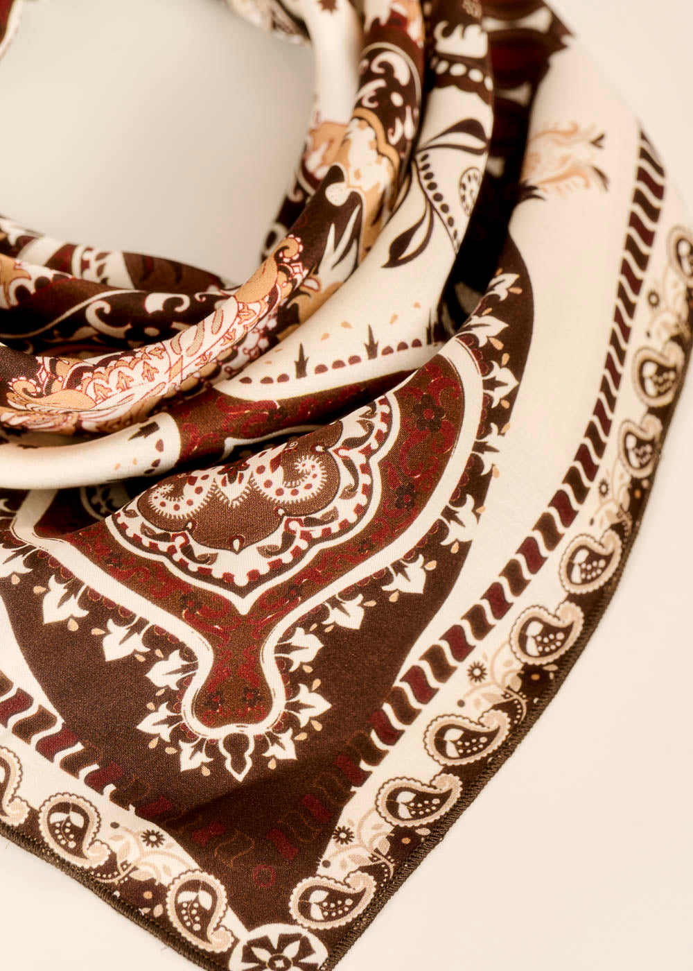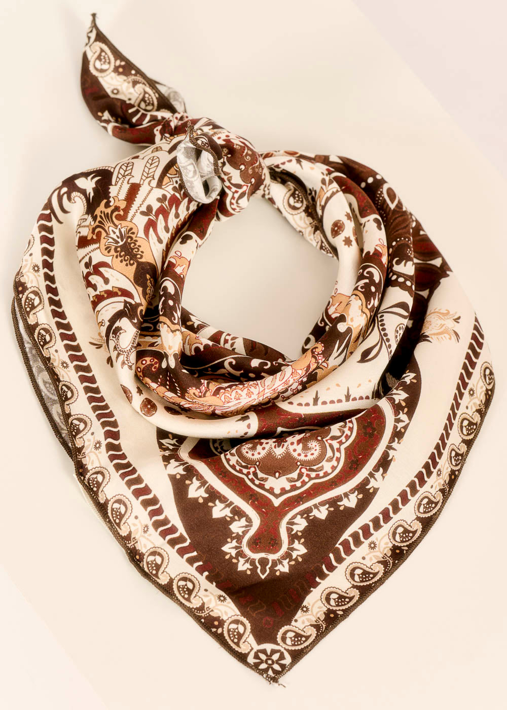 Ein modisches Statement, das in keiner Saison fehlen darf: Dieses stilvolle Bandana von VIAMORI ist das Must-have-Nickituch, das jedem Outfit sofort einen Hauch von Raffinesse verleiht. Das aufwendige Paisley-Muster in warmen Braun- und Cremetönen macht es zu einem vielseitigen Trend-Accessoire. Ob lässig um den Hals, im Haar oder an der Tasche – dieses Tuch sorgt für einen selbstbewussten und modernen Auftritt.
